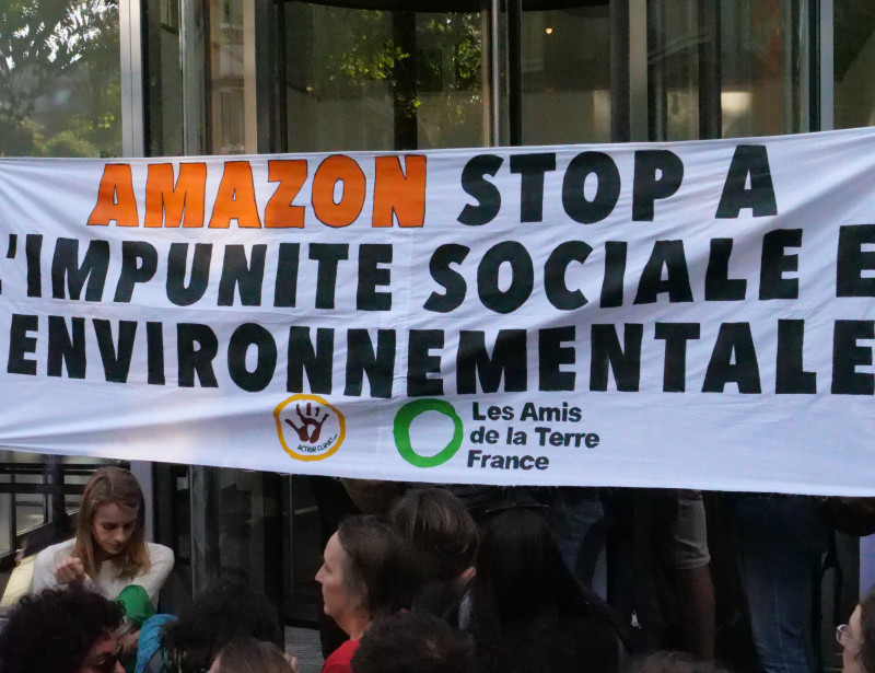 Autrement dit, Amazon se facturait ses propres services pour diminuer son résultat sur le sol français. Extrait du rapport L’enquête pointe également le bilan carbone « sous-évalué » de la multinationale. « Transport des colis, stockage de données, services de streaming, hébergement de millions de sites web par Amazon Web Services, traitement des déchets électroniques, artificialisation des sols, et fabrication des 15 milliards de produits vendus sur le site, le modèle économique d’Amazon génère de très lourds impacts environnementaux. » La multinationale s’est fixée un objectif de 100% d’énergies renouvelables en 2030. Mais selon le rapport, « l’objectif annoncé de 50 installations solaires d’ici à 2020 ne couvre que 6% des entrepôts d’Amazon et une fraction minime de l’empreinte carbone globale du groupe. » Le transport aérien, développé par Amazon aux États-Unis et en Europe pour assurer ses livraisons en 24 heures, est aussi pointé du doigt. « Réduire par deux les émissions du transport tout en augmentant les trajets en avion est impossible dans la période de 10 ans que la multinationale s’est prétendument fixée. »