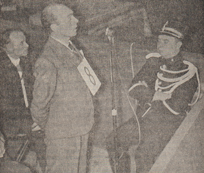 La photo illustre l’échevin existe Henti Merlot répondant à Monsieur le Juge Manise, président du Conseil de Guerre. L’homme sera condamné à mort et exécuté le 10 novembre 1947 à la caserne de gendarmerie à Charleroi