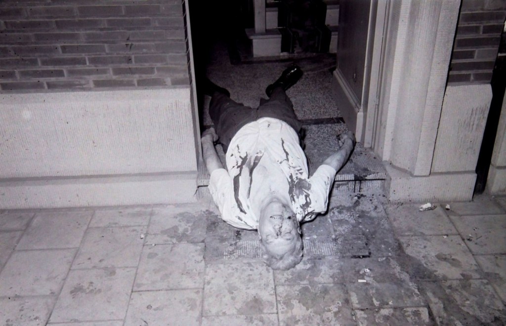« Ces photos prises du corps de Julien Lahaut après l’assassinat sont totalement inédites. Elles ne se trouvaient pas dans la copie du dossier judiciaire que nous avons pu consulter lors notre enquête scientifique sur l’assassinat de Julien Lahaut », nous confirme Emmanuel Gerard. Toutefois, comme nous, le professeur se pose bien des questions en les découvrant. Vu les circonstances de l’attentat, la position du corps étonne, mais admettons qu’elle correspond à la déclaration faite le soir des faits par l’épouse de la victime : « J’ai entendu quatre détonations (…) Je me suis précipitée vers l’entrée (…) Mon mari était étendu sur le dos, la tête pendant sur le trottoir. » Cependant, on observe aussi que les traces de sang sur le trottoir ont été sommairement nettoyées, ce qui semble indiquer que la scène de crime a été modifiée avant que l’on prenne ces photos.