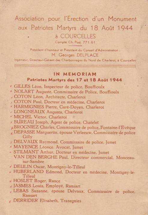 2° Defresnes Max et Thomas Alexandre furent tous les deux abattus le 10 avril 1944 par les gendarmes Toussaint Albert (actuellement adjudant commandant la brigade de Taillis-Prés) et William Albert. Ils furent abattus lors de l’attaque d’une ferme à Ham-sur-Heure. Navez était avec ses comparses mais il n’avait été que blessé et était parvenu à s’enfuir. Il fut arrêté ensuite et la justice l’a conduit devant le peloton d’exécution.
