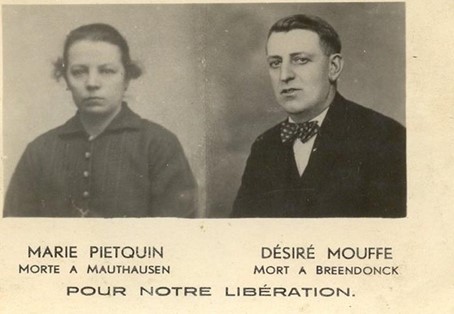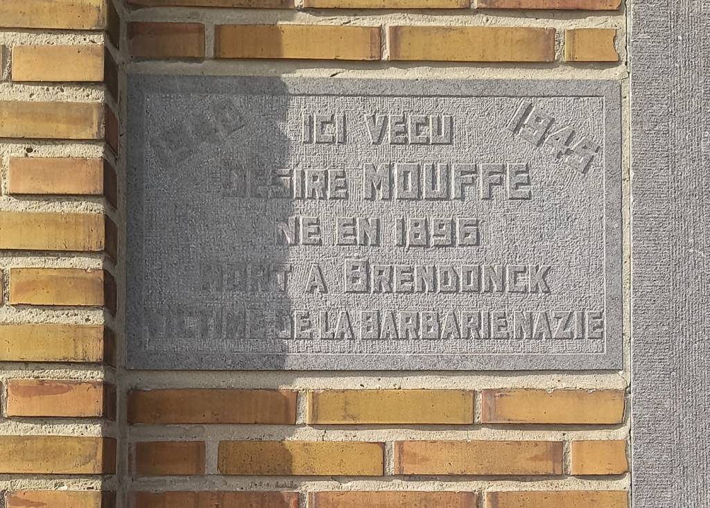 Désiré Mouffe était militant communiste. Devenu résistant, il fut arrêté et mourut à Breendonk où il rencontra un autre Courcellois bien connu, François Druine. Chaque année, jusque dans les années ’80, une délégation de la section courcelloise du Parti communiste allait déposer une couronne de fleurs sous la plaque commémorative apposée sur la façade de l’habitation au 150 de la rue des Quatre Seigneuries à Courcelles et rencontrait ainsi sa veuve, sa fille, sa famille, au cours d’une petite réception amicale.