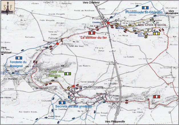 La découverte d’anciens fourneaux et de nombreux « crayats** » de Sarrasins gallo-romains atteste d’une façon indiscutable que le travail du fer remonte à une très haute antiquité. C’était particulièrement vrai dans l’Entre Sambre et Meuse où plus de 70 localités recèlent des gisements de minerai. Les plus riches d’entre eux se localisent dans les villages, de Florennes, Morialmé, Jamagne, Jamiolle, Daussois, Yves-Gomezée, Fairoul, Fraire, Oret, Mettet et Stave. Plus près de chez nous, la découverte de crayats à Jamioulx, Gerpinnes, Nalinnes, Acoz, Bouffioulx et Marcinelle atteste également de la plus haute antiquité de cette industrie.