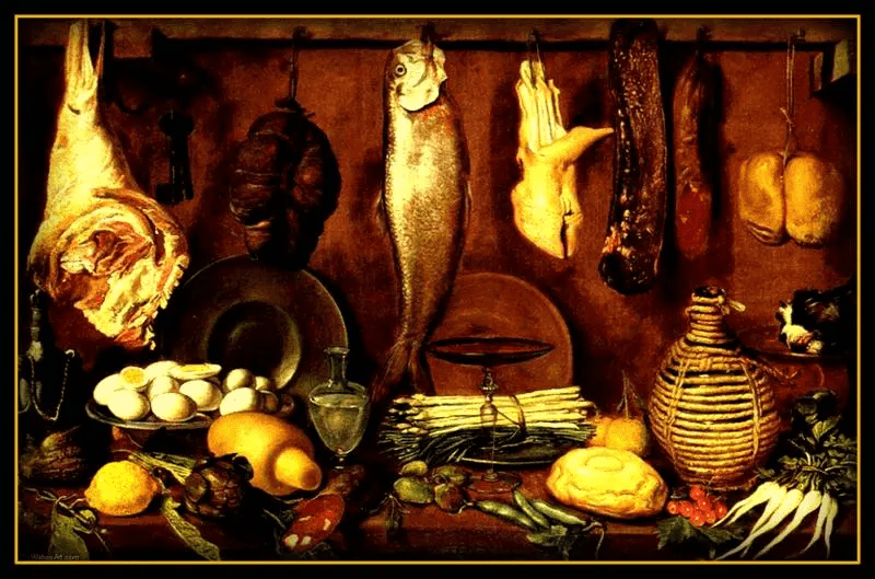 C’était de la fine cuisine, des mets succulentes où se croisaient les plats de chapons au vin et de prunes de Damas, des perdrix à la tri mouillette, des pieds de mouton à la sauge, des épaules de mouton rôti, de la hure de sanglier, du faisan rôti. Le tout agrémenté d’herbes les plus fines et de sauces préparées avec les meilleurs épices qui, à ce moment, étaient définitivement entrées dans les mœurs. Quoique venues en abondance en Occident avec les croisades, elles n’étaient que l’apanage des nobles et coûtait très cher. Le poivre se vendait toujours au prix de l’or d’où l’expression « c’est comme poivre » qu’on employait encore chez nous au début du siècle.