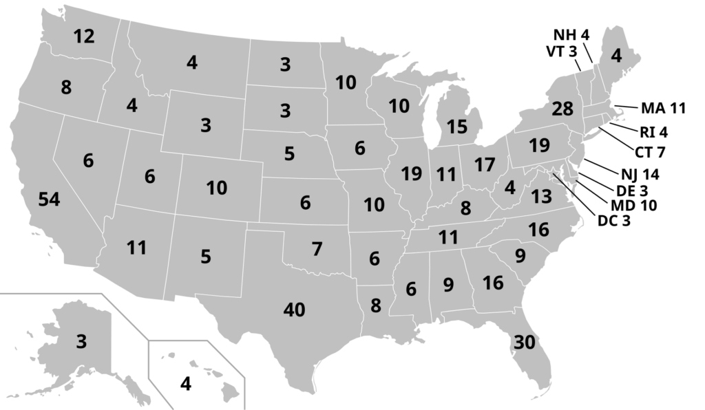 Aujourd’hui, chaque parti choisit comme grands électeurs des gens en qui le parti a confiance. Donc, si les simples électeurs votent en majorité pour Trump dans l’Etat du Texas par exemple, les grands électeurs du Texas du parti de Trump, vont voter Trump. Et si les simples électeurs votent en majorité pour Harris dans un autre Etat , l’Etat de New York par exemple, c’est la même chose; les grands électeurs vont voter pour Harris. Les grands électeurs respectent le vote des simples électeurs. Mais alors, où est le problème ? Il vient du nombre de grands électeurs et du vote majoritaire.