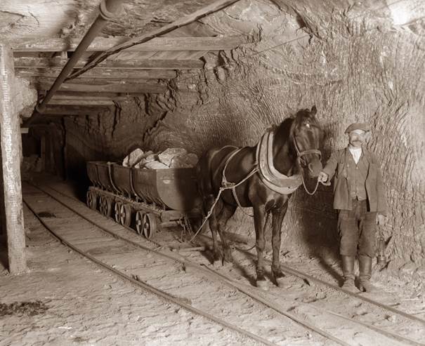 Chers amis, lecteurs et électrices, vous savez bien que le travail au fond de la mine se faisait par les hommes et les chevaux. J’ai débuté comme gamin de taille le 12 février 1936. J’étais dans une taille de 0,80 m à 0,90 m d’ouverture. Je clouais du treillis sur des étançons pour former une cage que je remplissais de cailloux que je ramassais aussi le charbon qui glissait dans les couloirs.