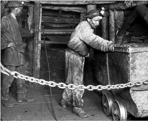 Arrivé dans la galerie principale, je plaçais ma rame sur une seconde voie de croisement et je caressais mon cheval pour le remercier tout en lui donnant une croûte de pain. Ensuite, nous repartions avec notre rame vide vers le plan (bouveau montant).