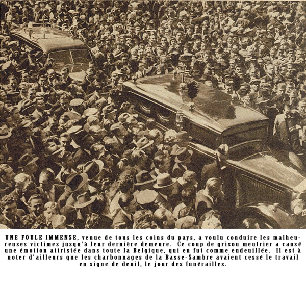 Arrivés à la surface, tous les corps avaient été rendus à leur famille et déposés à la maison communale de Trazegnies qui avait été transformée en chapelle ardente. C’est seulement en fin d’après-midi que j’ai pu rendre visite à Yvon et à Julien Roelandt à l’hôpital de Morlanwelz. Mon frère fut le seul rescapé car Julien mourut durant la nuit du 13 au 14 mai.